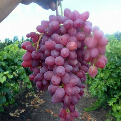 Виноград Кишмиш Велес - относится к классу бессемянного винограда и имеет сверхранним сроком созревания. (не более 100 дней). Предназначен для употребления в сушеном и свежем виде, а также для приготовления соков и вин. Грозди обладают ветвистостью и очень большим размером. Вес одной грозди достигает до 3 кг. Крупные ягоды имеют овальную форму, красивого, розового цвета. Сорт отличается высокой урожайностью. При благоприятных погодных условиях с одного куста можно снять до 30 кг плодов. Аромат плодов носит слегка выраженные мускатные ноты. Мякоть очень вкусная и плотная. Кожица практически не ощущается. Форма кистей цилиндрическая, Достигает до 45 см в длину и 25 см в ширину
