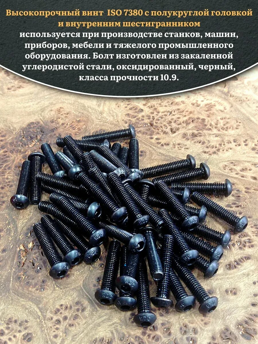 Винт чёрный под шестигранник ISO 7380, класс прочности 10.9 – высокопрочный крепёж для надежных соединений. Прочный и долговечный винт с полукруглой головкой и внутренним шестигранником соответствует международному стандарту ISO 7380. Изготовлен из закалённой углеродистой стали, что обеспечивает высокую прочность (класс 10.9) и устойчивость к нагрузкам. Ключевые особенности: оксидированное покрытие – защищает от коррозии и придает черный матовый оттенок. Внутренний шестигранник (шлиц) – удобство монтажа с помощью ключа-шестигранника. Точность изготовления – гарантирует плотную посадку и надежное крепление. Полукруглая головка – обеспечивает аккуратный внешний вид и снижает риск повреждения поверхностей. Применение: подходит для машиностроения, сборки металлоконструкций, ремонта автомобилей и промышленного оборудования. Благодаря высокому классу прочности 10.9 выдерживает значительные механические и вибрационные нагрузки.