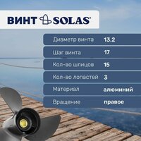 Купить Винт гребной Solas 13.2×17 для Yamaha, Tohatsu, Parsun 60-130л. с с доставкой по всей России. Винт гребной Solas 13.2×17 для Yamaha, Tohatsu, Parsun 60-130л. с: сравнение цен, характеристики, фото, актуальное наличие и цены.