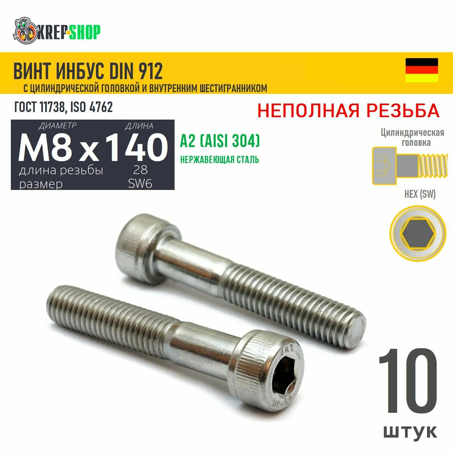 Купить Винт цил. гол. M8х140/28 в/ш нерж. А2 DIN 912 НР, 10 шт с доставкой по всей России. Винт цил. гол. M8х140/28 в/ш нерж. А2 DIN 912 НР, 10 шт: сравнение цен, характеристики, фото, актуальное наличие и цены.