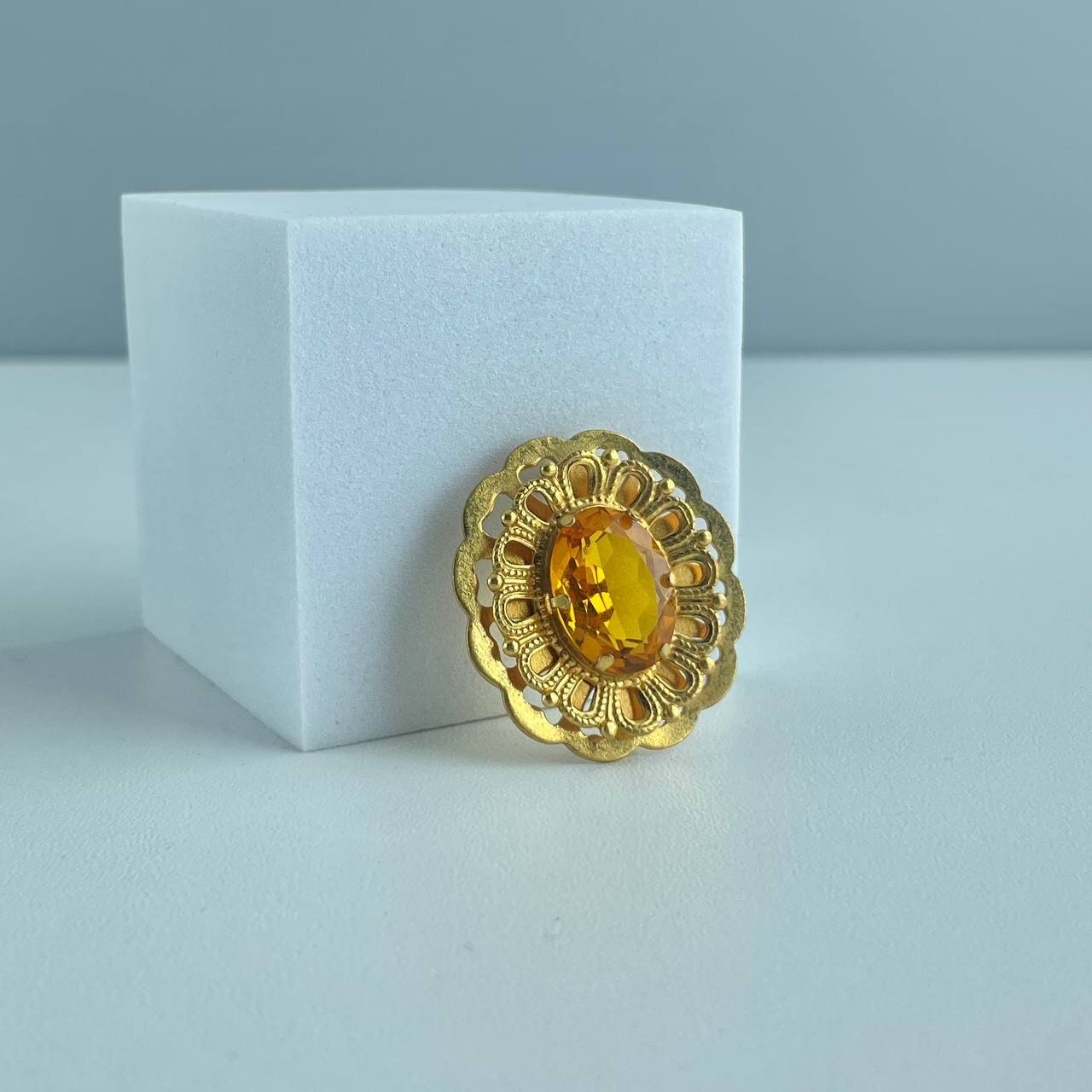 Винтажная брошь «Ильсина». Латунь, ювелирное стекло. Клеймо МКП. СССР, 1970-е.: сравнение цен, характеристики, фото, актуальное наличие и цены.