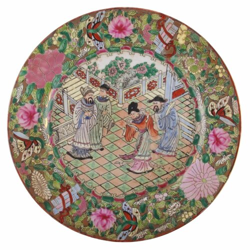 Купить Винтажная декоративная тарелка «Китайский дворец». Фарфор, эмаль, ручная роспись. Китай, 1940- ее с доставкой по всей России.