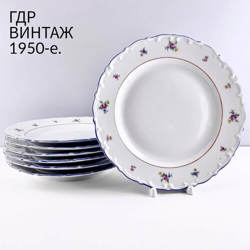 Винтажные обеденные тарелки «Мейсенский букет». Набор 7 шт. Фарфор Kahla, рельеф. ГДР, 1950-е.: сравнение цен, характеристики, фото, актуальное наличие и цены.