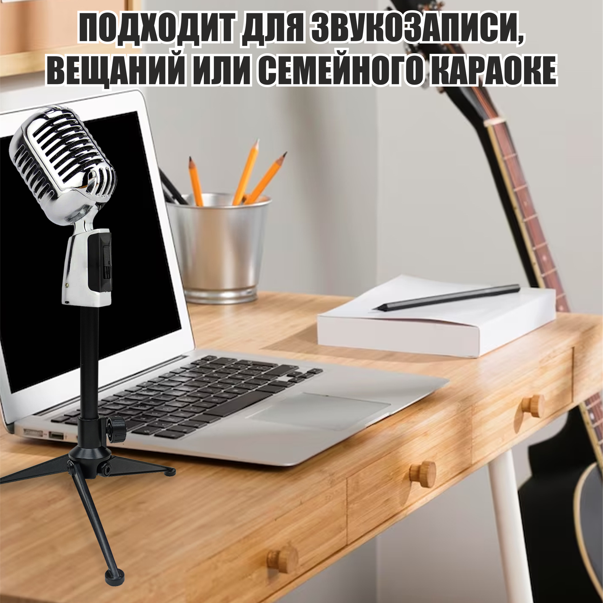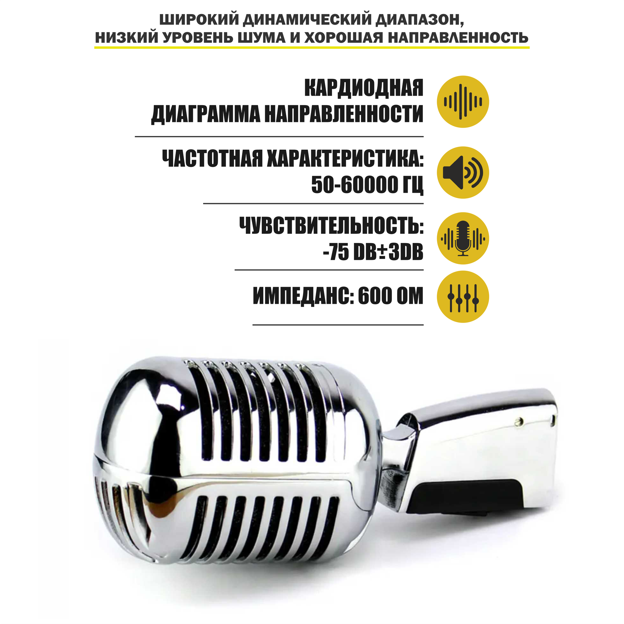 Купить Винтажный динамический микрофон, цвет серебро, на настольной стойке MF-027-38 с доставкой по всей России. Винтажный динамический микрофон, цвет серебро, на настольной стойке MF-027-38: сравнение цен, характеристики, фото, актуальное наличие и цены.