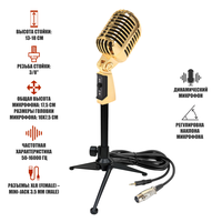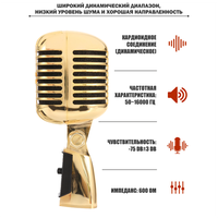 Винтажный динамический микрофон, цвет золото, на настольной стойке MF-027-38: сравнение цен, характеристики, фото, актуальное наличие и цены.