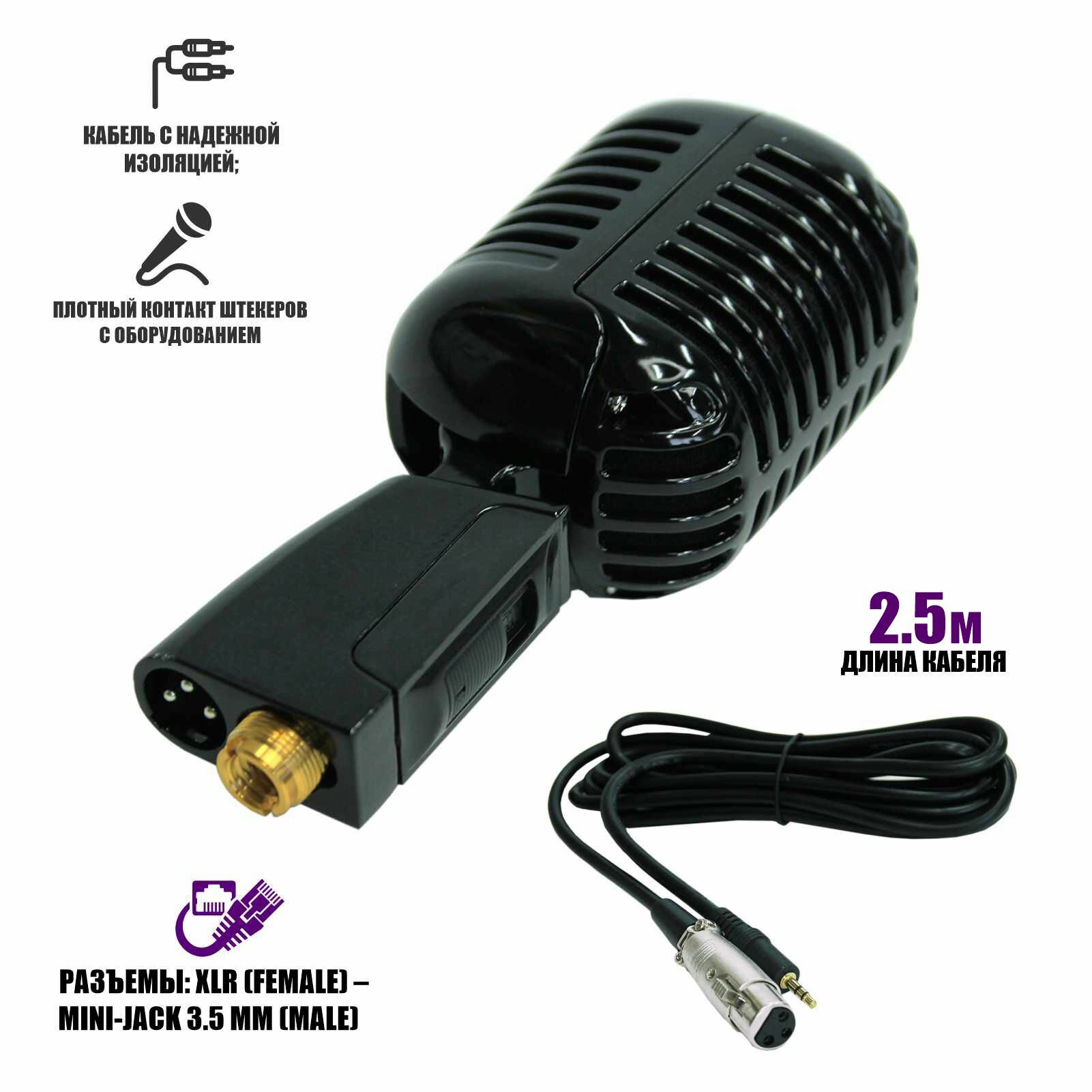 Винтажный профессиональный динамический микрофон, черный