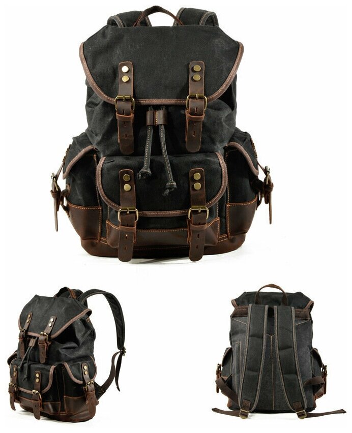 Повседневный городской рюкзак в винтажном стиле. Привлекает внимание окружающих своим неординарным видом. Подходит как для городских путешествий, так и для туристических поездок. Размер не превышает требований большинства авиакомпаний к ручной клади. Отличается своей функциональностью: Основное отделение закрывается на застежки на магнитах и при необходимости затягиваются с помощью плотной тесьмы. Внутри рюкзака отделение на липучке для планшета/ноутбука с диагональю экрана до 15,6". Один открытый карман для аксессуаров, держатели для письменных ручек, карман на молнии для ценных вещей. Снаружи на рюкзаке один большой центральный краман на кожаных ремешках с магнитной застежкой и два боковых кармана. Один потайной карман на спине. В нижней части рюкзака вставки из кожи для большей прочности. Спинка и лямки рюкзака выполнены из мягкой подложки для большего удобства. Есть ручка для ношения одной рукой, регулируемые лямки. Рюкзак сделан из материала канвас (прочный вощеный холст) в сочетании с натуральной кожей. Этот материал обладает износостойкостью, повышенной влагозащитой и легкостью чистки. Полезные советы по уходу: Из-за транспортировки рюкзак может быть помятым. Чтобы восстановить форму рекомендуем прогреть феном помятые места, материал станет мягким и выпрямится.