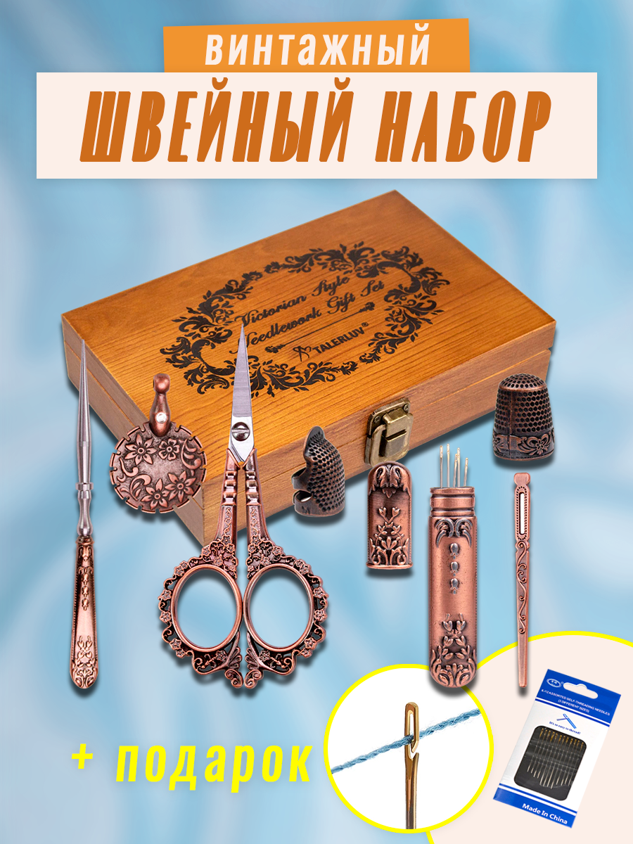 Винтажный швейный набор в деревянной коробке + 12 иголок с боковым ушком: сравнение цен, характеристики, фото, актуальное наличие и цены.
