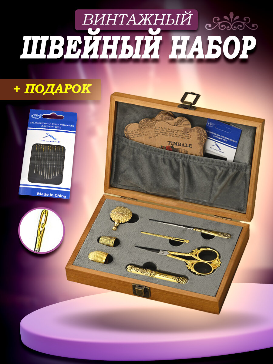 Винтажный швейный набор в деревянной коробке + 12 иголок с боковым ушком: сравнение цен, характеристики, фото, актуальное наличие и цены.