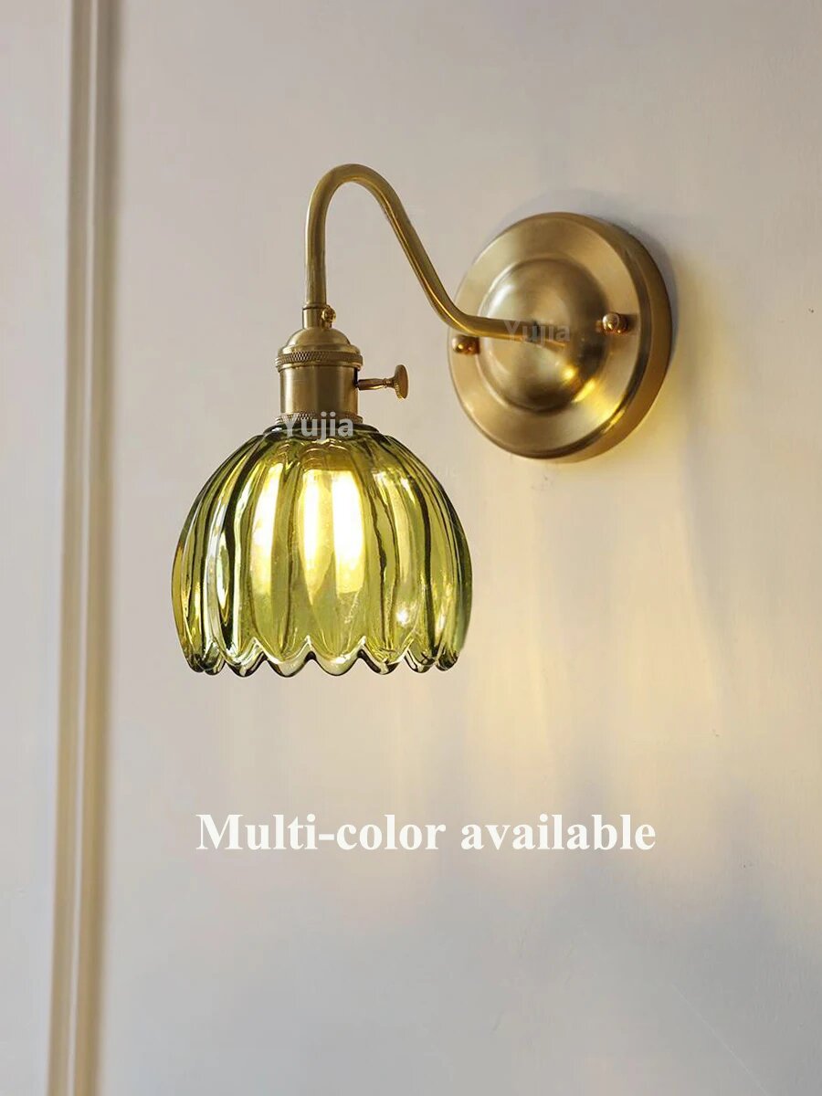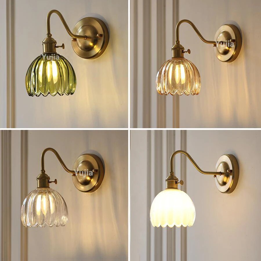 Разноцветные винтажные настенные бра со стеклянным абажуром из тюльпана, современные латунные настенные светильники с выключателем для прикроватной тумбочки, дверного проема для спальни