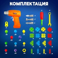 Винтовая мозаика "Конструктики" с шуруповёртом, 193 детали