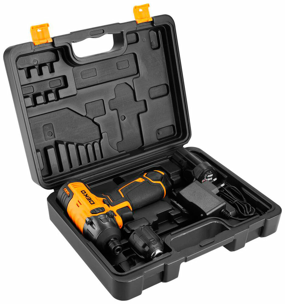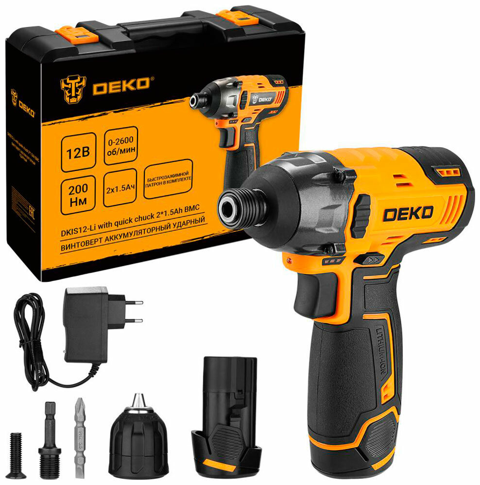 Винтоверт аккумуляторный ударный Deko DKIS12-Li, с быстрозажимным патроном, 12В, 2*1.5 Ач, в кейсе, желто-черный: сравнение цен, характеристики, фото, актуальное наличие и цены.