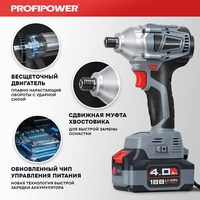 | Особенности конструкции | антивибрационная система, блокировка кнопки включения, использование бит без патрона, лампа точечной подсветки, предохранительная муфта |