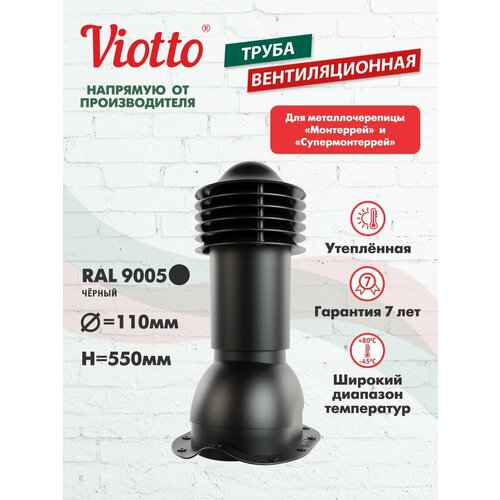 Купить Труба вентиляционная для металлочерепицы Viotto 110мм утепленная чёрный (RAL 9005) с доставкой по всей России.