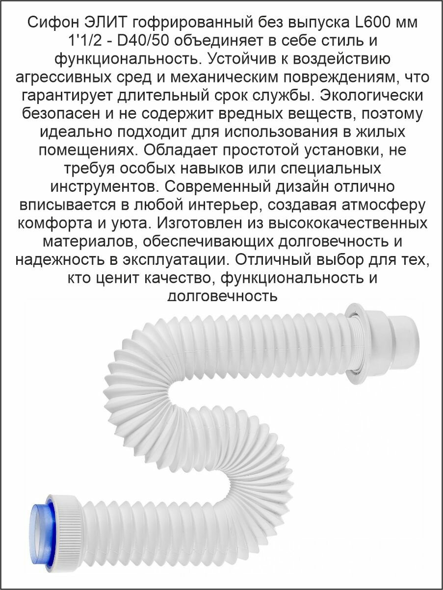 Купить Virplast Сифон элит гофрированный без выпуска L600 мм 1 1/2″ — D40/50 мм 30980621 с доставкой по всей России. Virplast Сифон элит гофрированный без выпуска L600 мм 1 1/2″ — D40/50 мм 30980621: сравнение цен, характеристики, фото, актуальное наличие и цены.