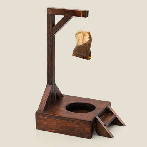Для кого Для тех, кому не чужды средневековые методы борьбы с беспорядком на столе во время чаепития. Для аккуратистов и ценителей практичного и справедливого обращения с отслужившими своё чайными пакетиками. Для чего Для успокоения буйных чайных пакетиков, вечно сеющих хаос, и не признающих вашего господства в доме, чтобы у отработанных чайных пакетиков всегда было свое место. Из чего Ручная работа, натуральное дерево. Прочный и устойчивый каркас виселицы рассчитан на чашку любого размера и формы, а чайный пакетик надёжно крепится в прорези верхней балки. Что немаловажно, можно не переживать за сохранность дерева при контакте с водой, поскольку оно тщательно обработано морилкой. Просто заварите свой любимый чай, подвесьте пакетик (жидкость сама будет стекать в технологическое отверстие под чашкой, откуда позднее её можно с лёгкостью ликвидировать) и наслаждайтесь чаепитием в компании друзей или в комфортном одиночестве!