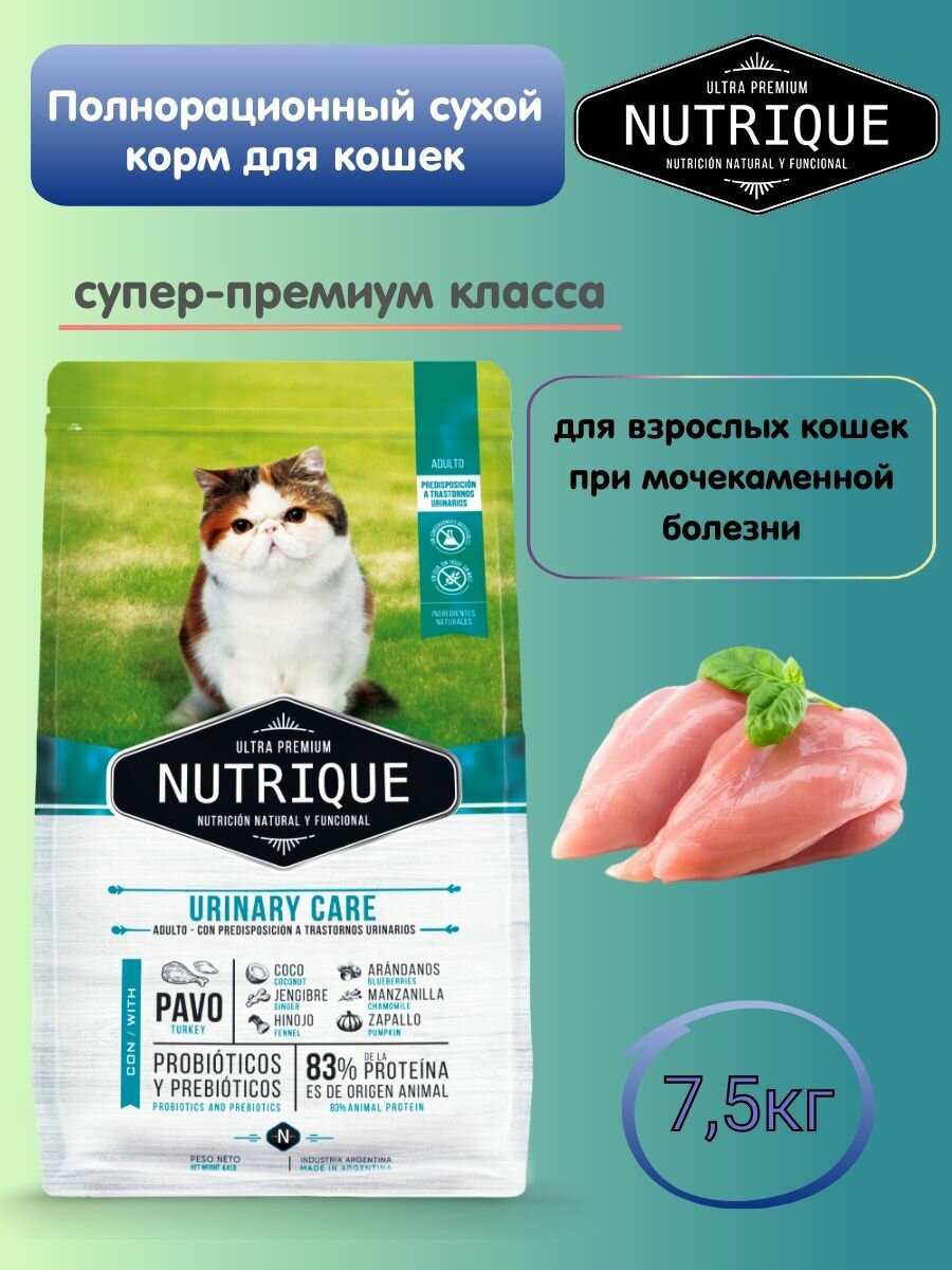 Сухой корм Vitalcan Nutrique Cat Urinary Care для кошек с проблемами мочеиспускания, с индейкой, 7,5 кг