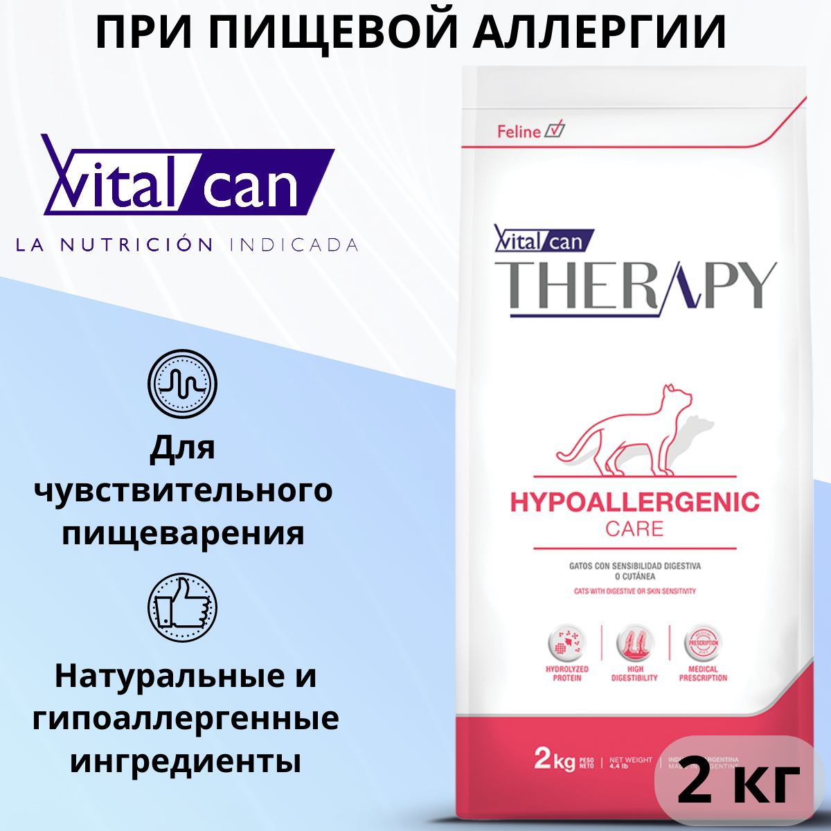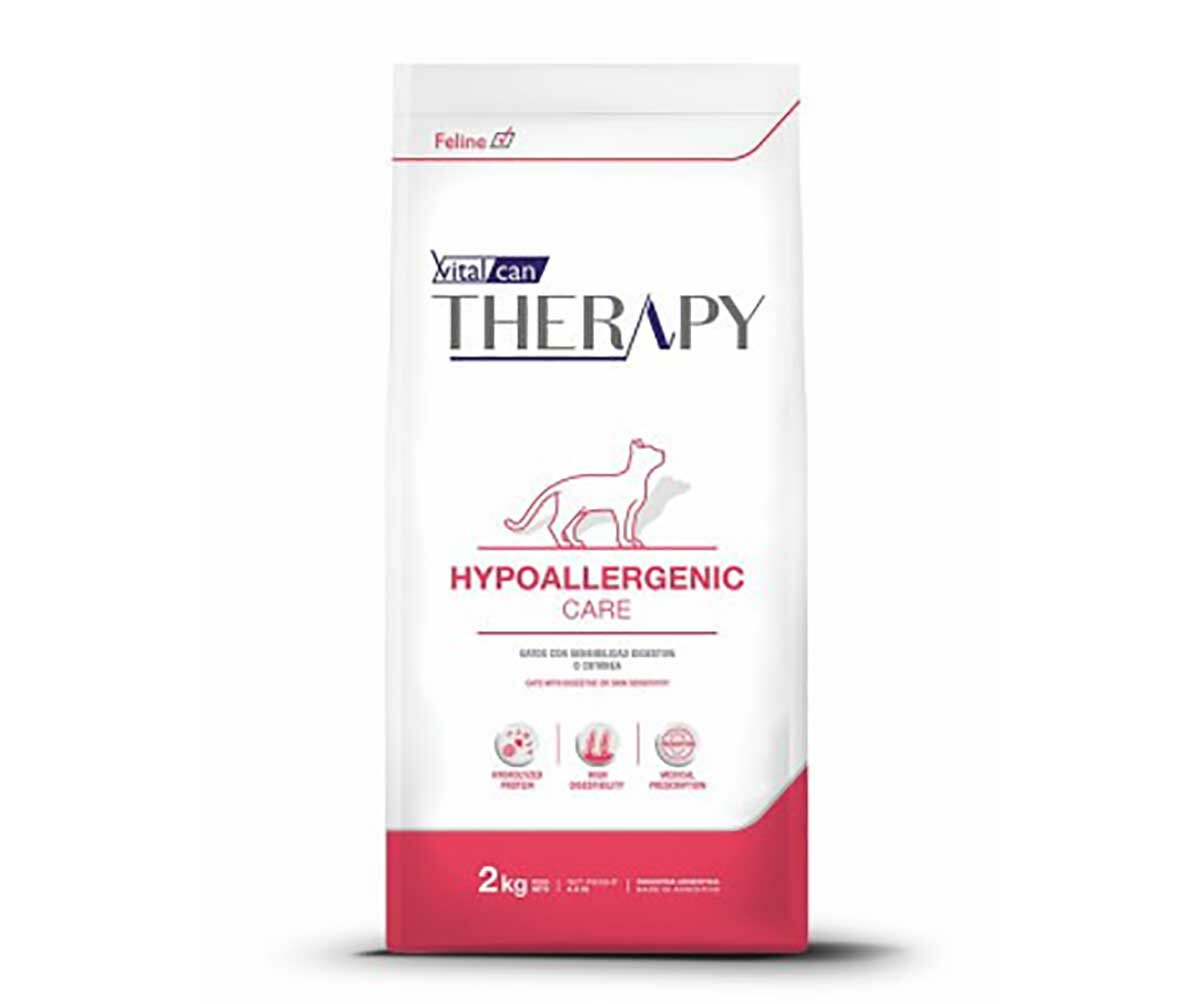 Vitalcan Therapy Feline Hypoallergenic Care - лечебный полнорационный корм для кошек всех возрастов с признаками пищевой непереносимости и пищевой аллергии, воспалительным заболеванием кишечника.