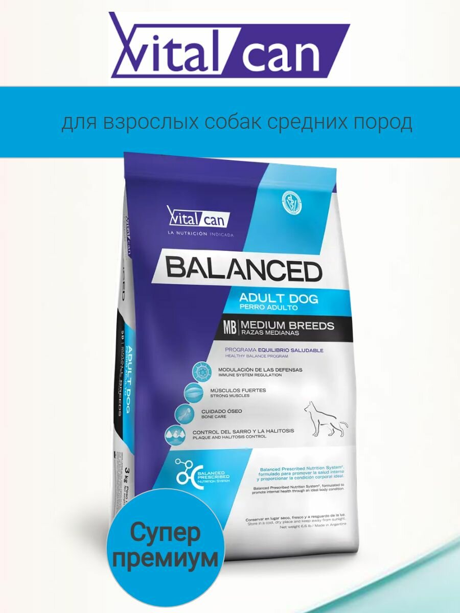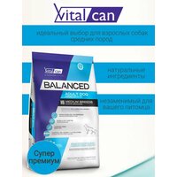 Виталкан Корм Balanced Dog Adult для взрослых собак средних пород 12 кг