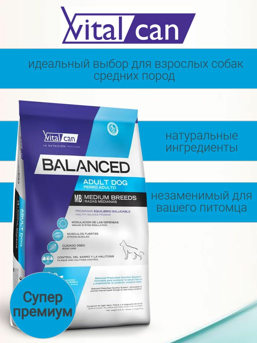 Купить Виталкан Корм Balanced Dog Adult для взрослых собак средних пород 12 кг с доставкой по всей России.