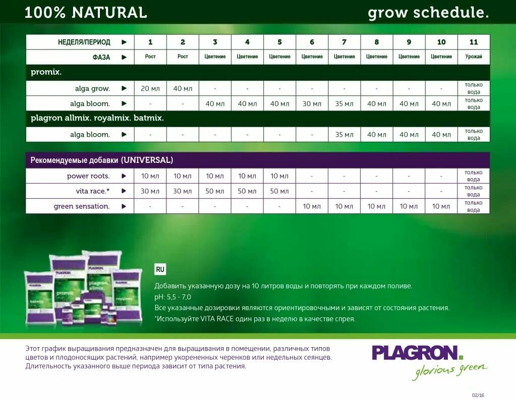Можно ли использовать Plagron Vita Race совместно с продуктами линеек Terra, Natural, Coco? Да, в качестве спрея для листьев. Если вы добавляете состав в ирригационную систему, поливайте только почву.