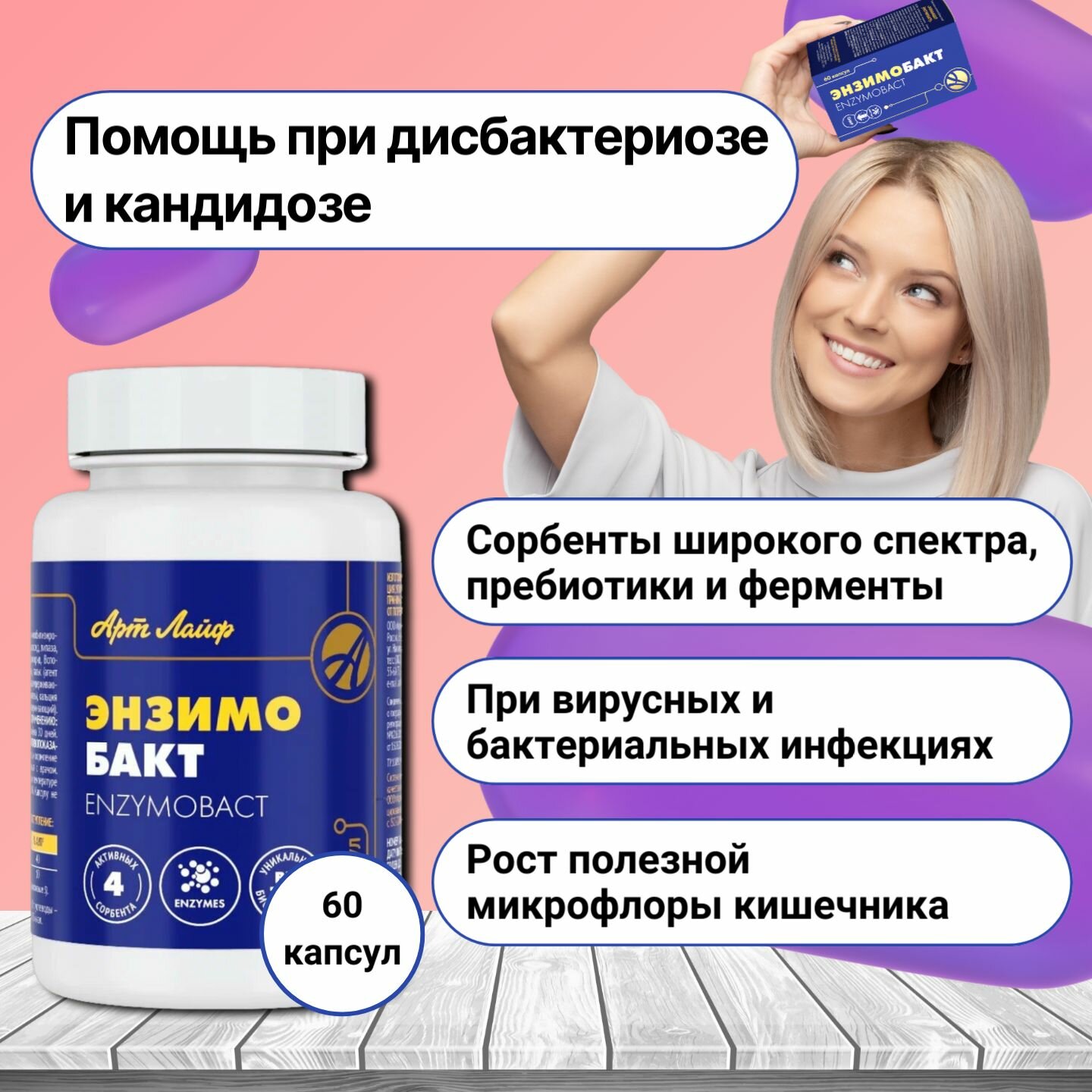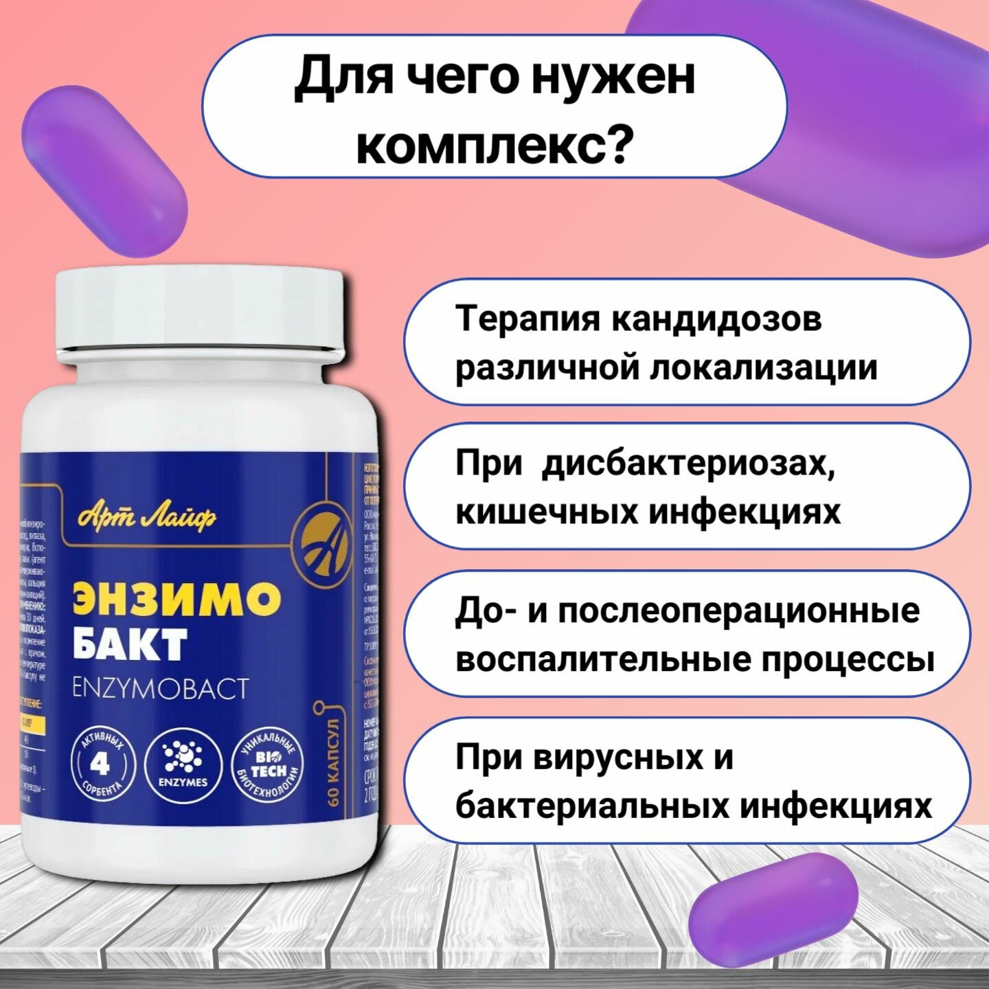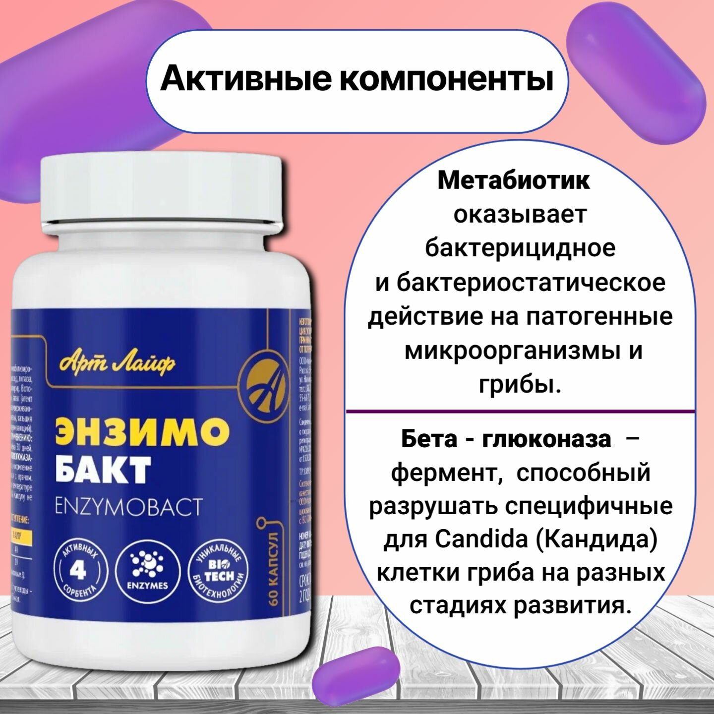Купить Артлайф Энзимобакт 60 капсул. — Метаболическая детоксикация при дисбиозе и кандидозе. с доставкой по всей России. Артлайф Энзимобакт 60 капсул. — Метаболическая детоксикация при дисбиозе и кандидозе.: сравнение цен, характеристики, фото, актуальное наличие и цены.