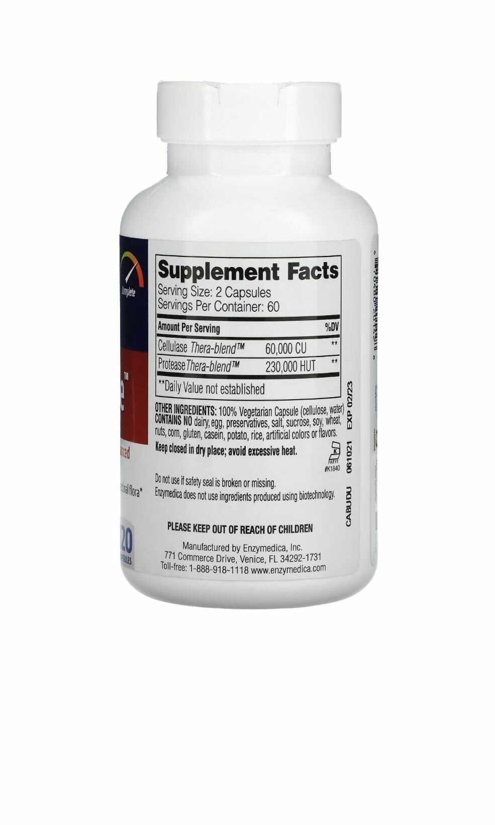 Размер порции: 2 капсулы. Количество порций в упаковке: 60. Состав порции: Целлюлаза Thera-blend 60 000 CU, Протеаза Thera-blend 230 000 HUT