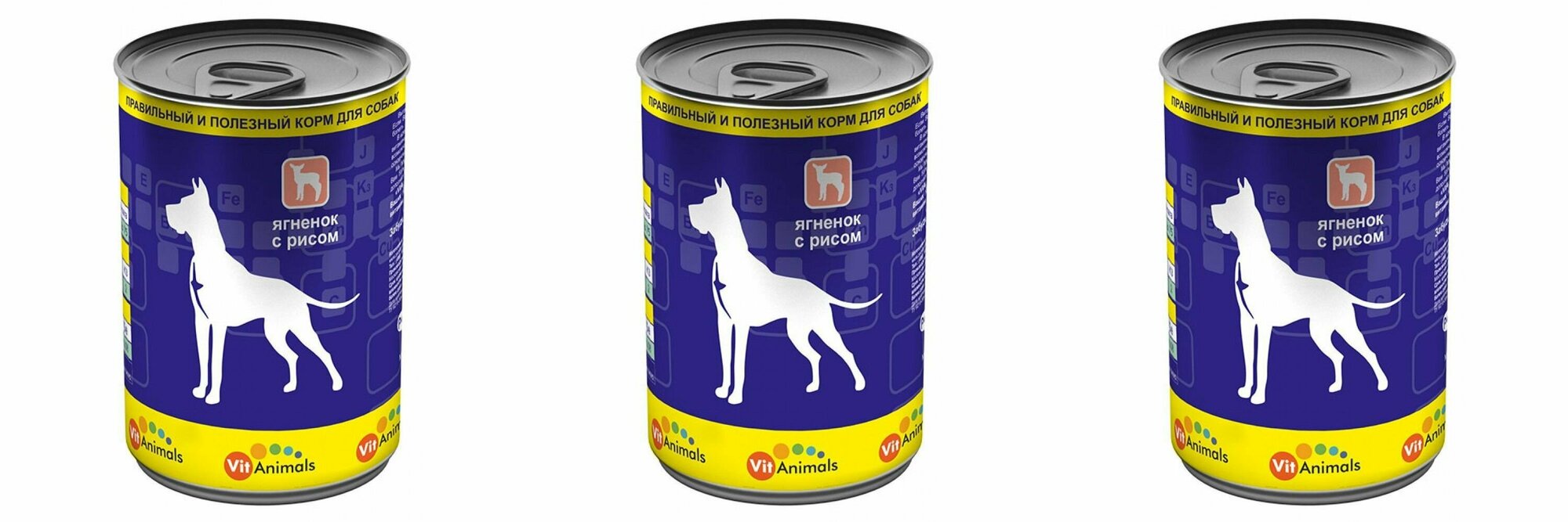 VitAnimals Консервированный корм для собак Ягненок с рисом, 410 г, 3 шт