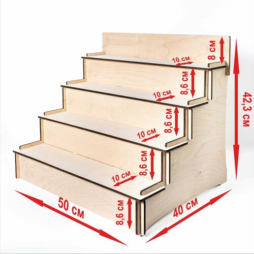 Наше отличие от конкурентов - мы создаем витрины-лесенки из фанеры толщиной 6 мм.