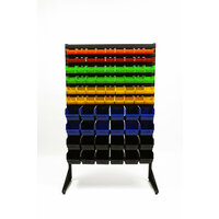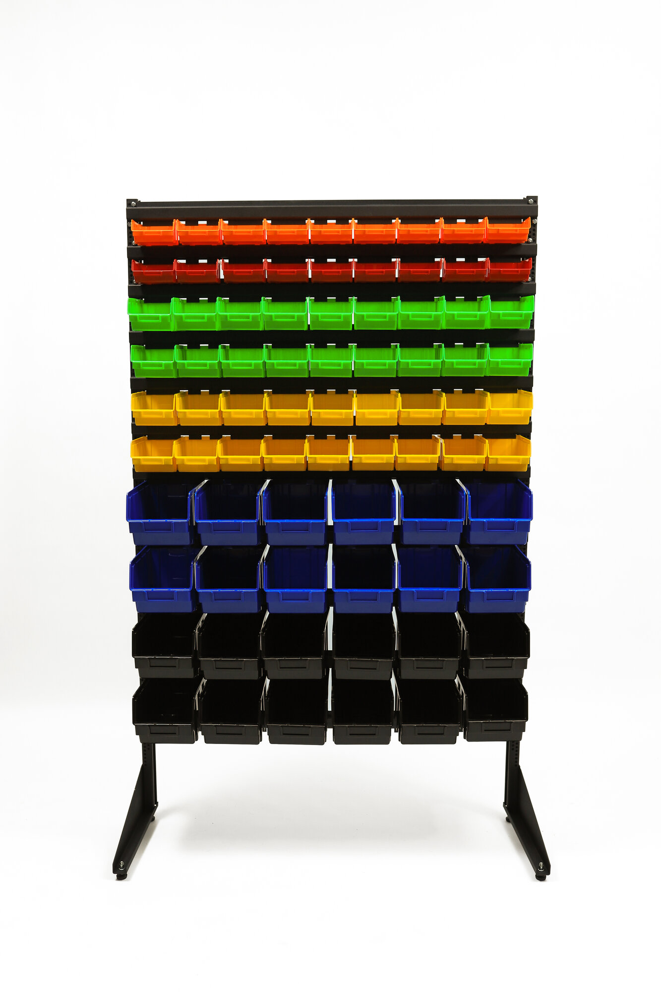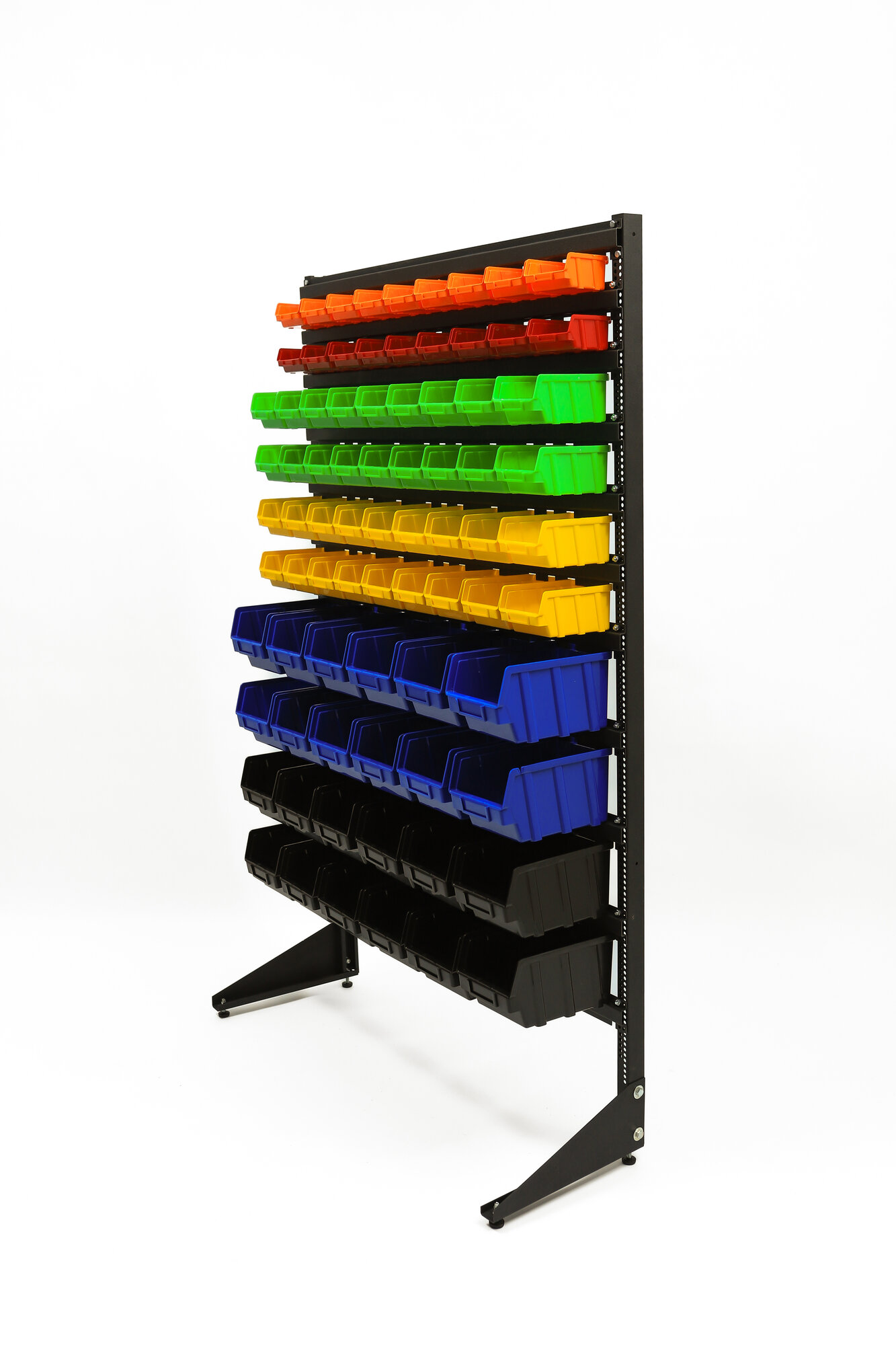 Наполнение стеллажа: Ящики (90*100*50 мм): 18 шт. Ящики (155*100*75 мм): 36 шт. Ящики (230*145*125 мм): 24 шт. Всего ящиков: 78 шт. Металлический стеллаж с пластиковыми ящиками предназначен для хранения крепежа и мелких товаров. Стойка окрашена порошковой краской. Ящики изготовлены из полипропилена высокого качества. Надежность конструкции гарантируется. Стеллажи с ящиками идеально подойдут для магазина крепежа, склада или станут хорошим решением при размещении запчастей в гараже. Грузоподъемность – 800 кг. Стеллаж показывает высокое качество эксплуатации, даже при полной загрузке ящиков.