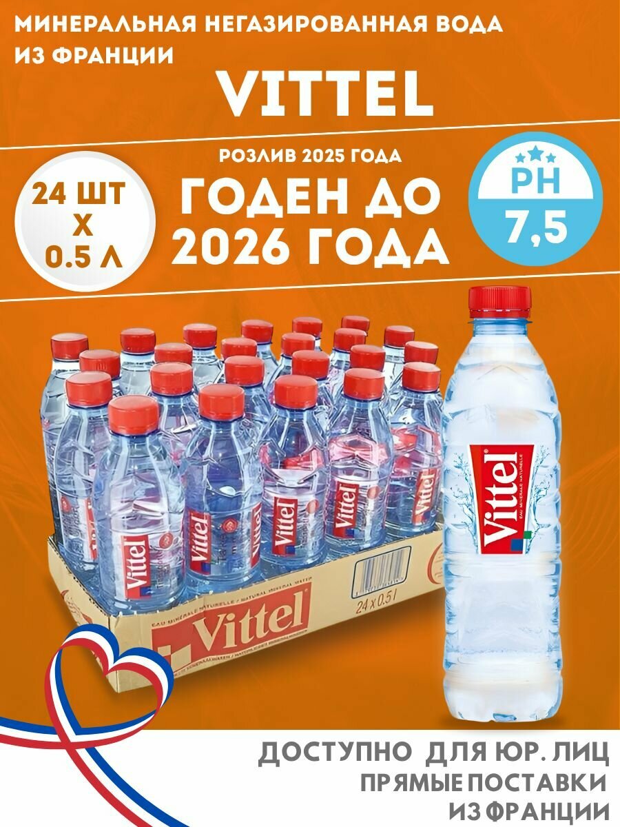 Vittel 0.5 л * 24 шт. / Виттель 0,5 л, Вода минеральная негазированная 0,5л, ПЭТ Франция: сравнение цен, характеристики, фото, актуальное наличие и цены.