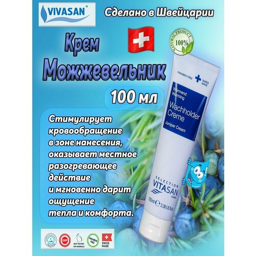 Крем "Можжевельник" Вивасан создан на основе целебных эфирных масел можжевельника, горной сосны, эвкалипта, кипариса, масла соевых бобов, стимулирует кровообращение в зоне нанесения, оказывает местное разогревающее действие и мгновенно дарит ощущение тепла и комфорта. Благотворно влияет на функции опорно-двигательного аппарата и нервно-мышечной системы при их перенапряжении, облегчает дыхание при кашле и простудах. При регулярном применении ускоряет обмен веществ, выводит токсины, снимает воспаление. Крем имеет универсальное воздействие: Стимулирует кровообращение. Снимает мышечное напряжение и усталость. Обладает противовоспалительным действием. Облегчает дыхание при простудных заболеваниях Дезинфицирует кожу. Крем имеет жидкую консистенцию и очень экономичен: на одно нанесение достаточно 2-5 мм продукта. Входящие в состав эфирные масла сосны, эвкалипта и кипариса, обладают мощным очищающим и укрепляющим действием и придают составу выраженный хвойный аромат. Часто нас беспокоят тянущие боли в спине, боли в суставах и мышцах. Ежедневно двигаясь, мы не застрахованы от боли из-за растяжения связок, ушибов, воспаления сухожилий и суставов. Для таких случаев компания вивасан рекомендует крем Можжевельник, быстродействующее обезболивающее противовоспалительное средство на растительной основе. Активными компонентами крема являются эфирные масла можжевельника, горкой сосны, эвкалипта, кипариса, масло соевых бобов, метилникотинат, жидкий парафин. Можжевельник (Juniperus communis) относится к реликтовым целебным растениям, известным еще с библейских времен, когда его использовали для изгнания злых духов. У некоторых народов он считался символом вечной жизни, по-лагали, что он может бороться со смертью. По мнению ученых, это одно из наиболее перспективных веществ для создания противораковых препаратов. Эфирное масло из можжевельника используют для растираний при ревматизме, параличе, подагре, невралгии, полиартрите, для лечения трихомонадных кольпитов. Эфирное масло можжевельника вместе с производным витамина В3 метилникотинатом расширяет кровеносные сосуды, улучшая кровообращение и ускоряя обмен веществ. За счет этих эффектов крем быстро уменьшает боль и создает ощущение теплоты. Оригинальный состав крема обеспечивает его быстрое проникновение и высокую концентрацию в самом центре боли и воспаления. Крем оказывает дезинфицирующее воздействие на дыхательную систему, эффективен для профилактики и лечения простудных заболеваний. Благодаря наличию эфирных масел хвойных деревьев: сосны, эвкалипта, кипариса помогает при кашле, остром и хроническом бронхите, бронхите курилыщиков. Оказывает очищающее воздействие на весь организм, укрепляет иммунитет, снимает нервное напряжение, усталость. Соевое масло (соя глицин) - как и все масла, богатые незаменимыми жирными кислотами, восстанавливает эпидермальный барьер и влагоудерживающую способность кожи, а благодаря наличию токоферолов и фитостеринов обладает выраженным регенерирующим действием. Входящий в состав крема жидкий парафин - смягчающее и увлажняющее средство, повышает упругость и эластичность кожи. Устраняет неприятное ощущение стянутой и сухости кожи и защищает её от вредного воздействий внешней среды и средств бытовой химии. Совместно с цетеариловым спиртом