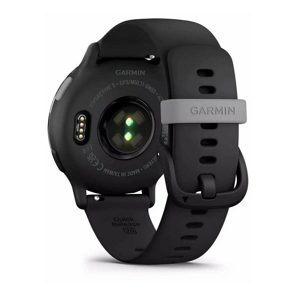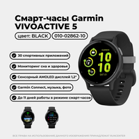 Garmin Vivoative 5 Slate Aluminum Bezel with Black Case and Silicone Band Безель из сланцевого алюминия с черным корпусом и силиконовым ремешком PART NUMBER 010-02862-10 срок службы батареи (режим смарт-часов) До 11 дней (5 дней дисплей всегда включен) ТИП дисплея AMOLED (опциональный режим «всегда включен») сенсорный экран ДА рейтинг воды Плавание, 5 АТМ режим инвалидной коляски ДА оценка СНА И статистика ДА гармин ПЕЙ ™ музыкальное хранилище ДА Общий материал линзы Стекло Corning® Gorilla® Glass 3 материал лицевой панели анодированный алюминий материал корпуса армированный волокном полимер быстросъемные ленты да (20 мм, отраслевой стандарт) материал ремешка силикон физический размер 42,2 х 42,2 х 11,1 мм Подходит на запястье обхватом 125-190 мм. масса 23 г (36 г с ремешком в комплекте) размер дисплея Диаметр 1,2 дюйма (30,4 мм) разрешение экрана 390 х 390 пикселей цветной дисплей ДА вариант большого шрифта ДА срок службы батареи Режим SmartWatch: До 11 дней (5 дней дисплей всегда включен) Режим экономии заряда батареи Режим SmartWatch: До 21 дня Режим GNSS только с GPS: До 21 часа Режим GNSS для всех систем: До 17 часов Режим GNSS для всех систем с музыка: До 8 часов Подробнее способ зарядки Зарядное устройство собственной разработки Garmin. память/история 4ГБ Особенности часов время/дата ДА синхронизация времени ПО GPS ДА автоматический переход на летнее время ДА будильник ДА таймер ДА секундомер ДА время восхода/захода солнца ДА Мониторинг здоровья и благополучия частота пульса на запястье (постоянная, каждую секунду) ДА суточная частота пульса В состоянии покоя ДА оповещения об аномальном пульсе да (высокий и низкий) частота дыхания (24X7) ДА пульс ОКС насыщение крови кислородом да (выборочная проверка и опционально в течение всего дня и во сне) фитнес-возраст ДА монитор энергии BODY BATTERY ™ ДА стресс на весь день ДА напоминания О релаксации ДА таймер релаксационного дыхания ДА медитация ДА дыхание ДА спать да (продвинутый) тренер ПО СНУ ДА обнаружение СНА ДА увлажнение ДА женское здоровье ДА снимок состояния здоровья ДА Датчики GPS ДА ГЛОНАСС ДА галилео ДА наручный пульсометр GARMIN ELEVATE ™ ДА PULSE OX монитор насыщения крови кислородом ДА компас ДА акселерометр ДА термометр да (требуется датчик tempe ™ ) датчик освещенности ДА Ежедневные умные функции возможности подключения Bluetooth ® , ANT+ ® , Wi-Fi ® CONNECT IQ ™ (загружаемые циферблаты, поля данных, виджеты И приложения) ДА магазин CONNECT IQ ™ на устройстве ДА умные уведомления ДА текстовый ответ/отклонение телефонного звонка С помощью текстового сообщения (только ANDROID ™ ) ДА просмотр изображений из уведомлений на часах ( только ANDROID ™ ) ДА утренний отчет ДА календарь ДА прогноз погоды ДА настройки В реальном времени синхронизируются С мобильным устройством GARMIN CONNECT ™ . ДА экономия заряда батареи (настраиваемые часы С низким энергопотреблением) ДА управляет музыкой на смартфоне ДА воспроизводит И контролирует просмотр музыки ДА найди МОЙ телефон ДА найти МОИ часы ДА сопряжение С GARMIN CONNECT ™ MOBILE ДА совместимость со смартфоном iPhone® , Android ™ Профили деятельности спортзал Силовые тренировки, HIIT, кардио, эллиптические тренировки, ступеньки, гребля в помещении оздоровление Прогулки, Пилатес, Йога БЕГ В помещении Беговая дорожка, бег на беговой дорожке в помещении БЕГ на свежем воздухе Бег отдых на свежем воздухе Диск-гольф езда на велосипеде Езда на велосипеде, Езда на велосипеде в помещении, Езда на электронно