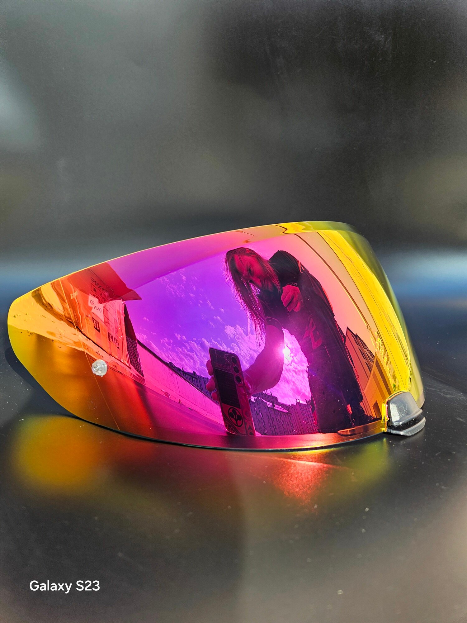 Обратите внимание в случаях с цветными визорами - из-за освещения их цвет может сильно меняться, например от ярко-красного к голубому и потом к золотому.