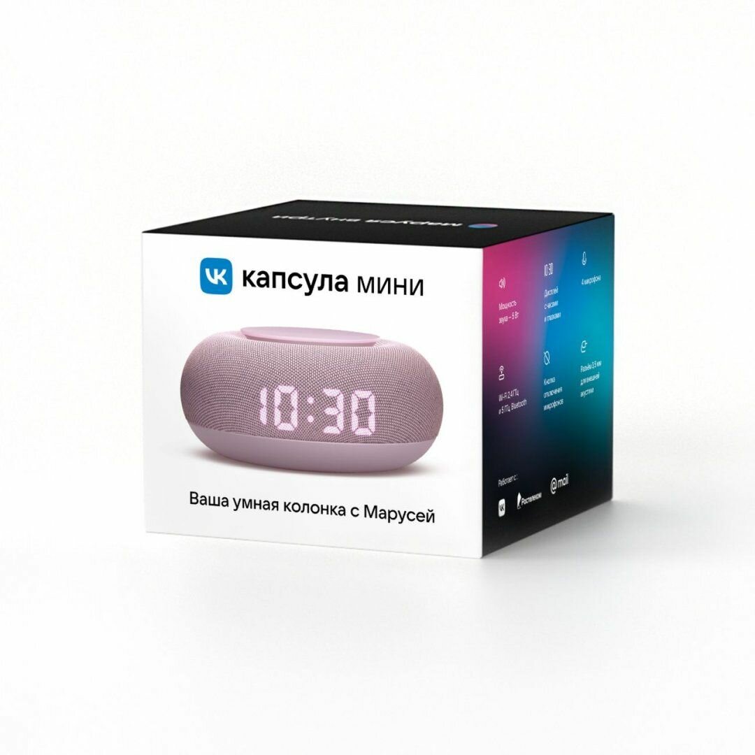 VK Капсула Мини: компактная умная колонка с дисплеем, который показывает время, погоду и милые глазки Маруси. VK Капсула Мини отлично смотрится в любом интерьере.