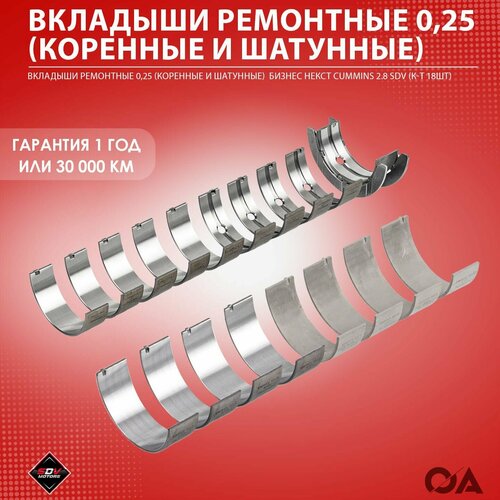 Купить Вкладыши ремонтные 0,25 (коренные и шатунные) Газель Бизнес Некст Cummins 2.8 SDV (к-т 18шт) с доставкой по всей России.