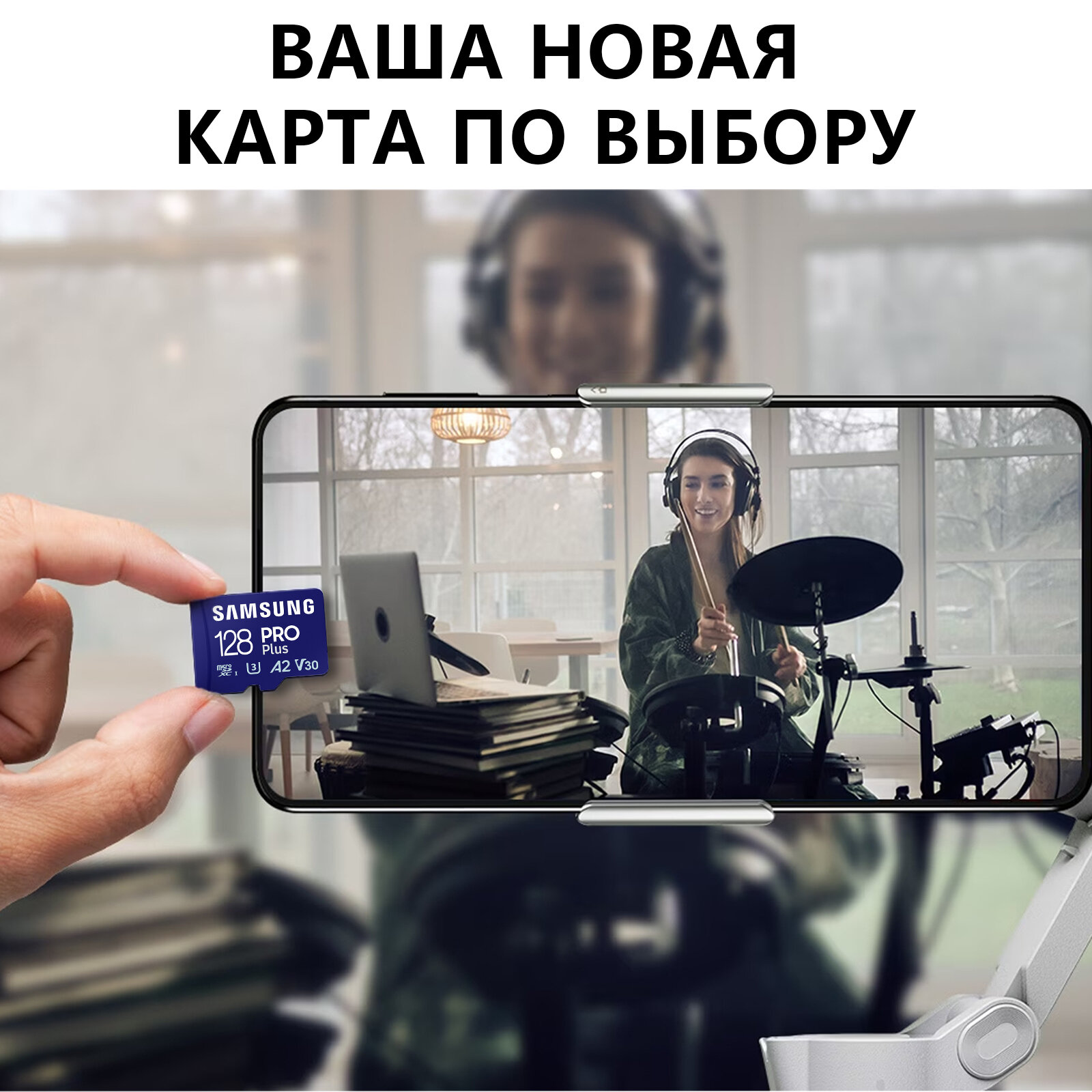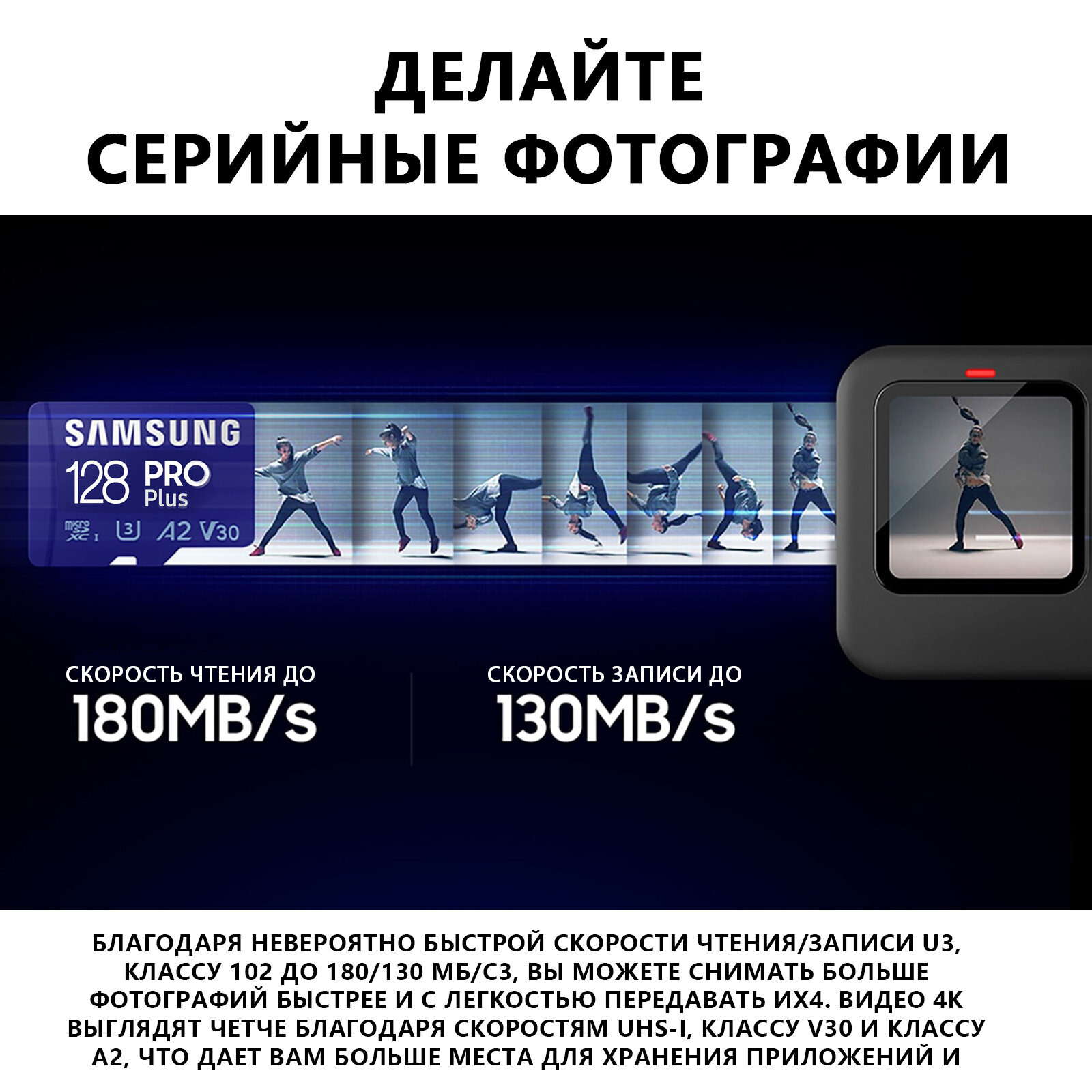Купить Включает картридер SDXC UHS-I U3 Samsung Pro PLUS 128 ГБ, 180 МБ/с, класс 10, с доставкой по всей России.