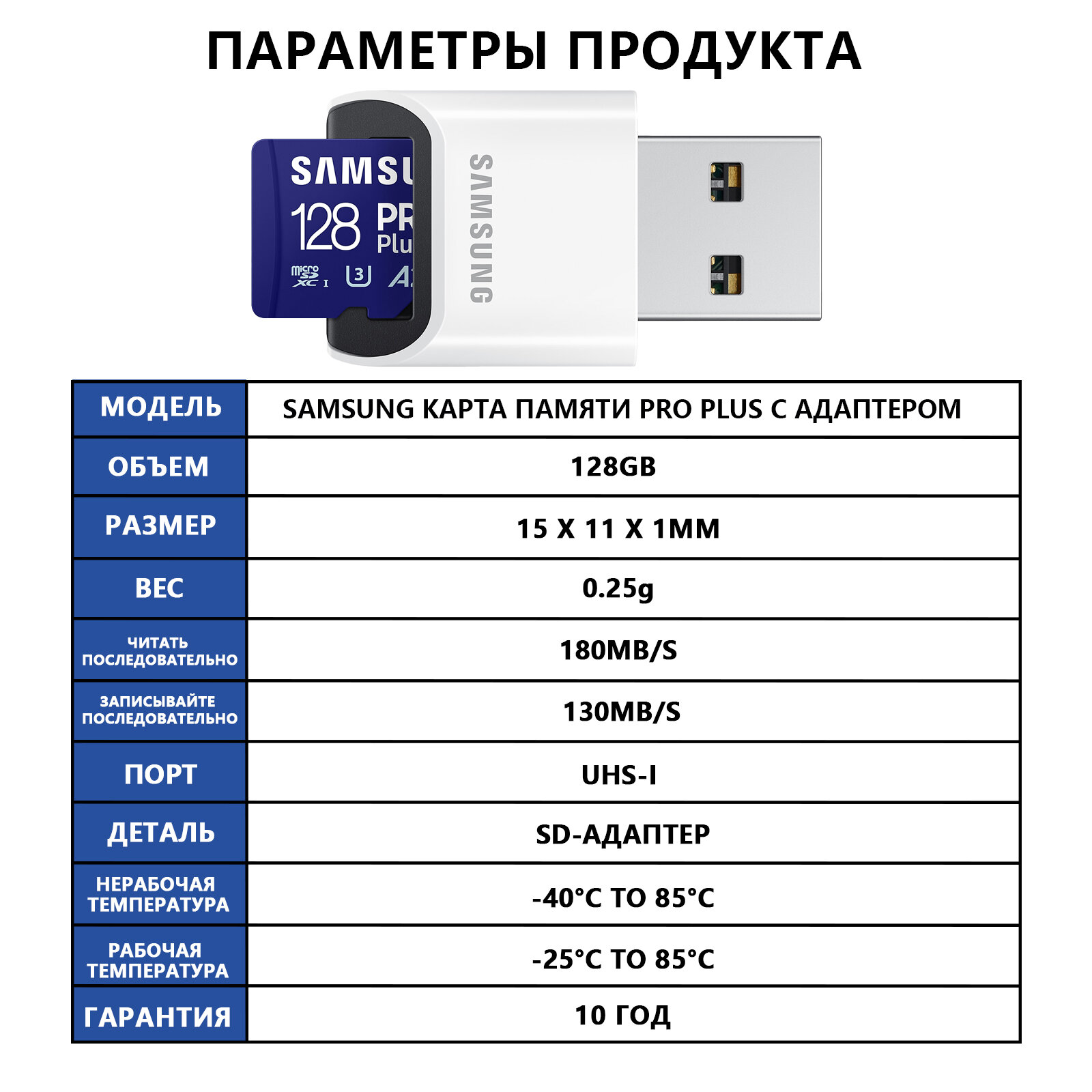 Включает картридер SDXC UHS-I U3 Samsung Pro PLUS 128 ГБ, 180 МБ/с, класс 10,: сравнение цен, характеристики, фото, актуальное наличие и цены.