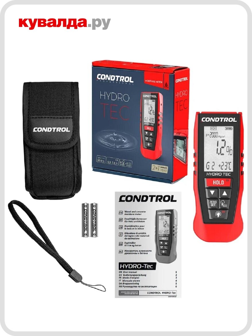 Комплектация: влагомер стройматериалов HYDRO-Tec CONDTROL, чехол, батарейки, инструкция.