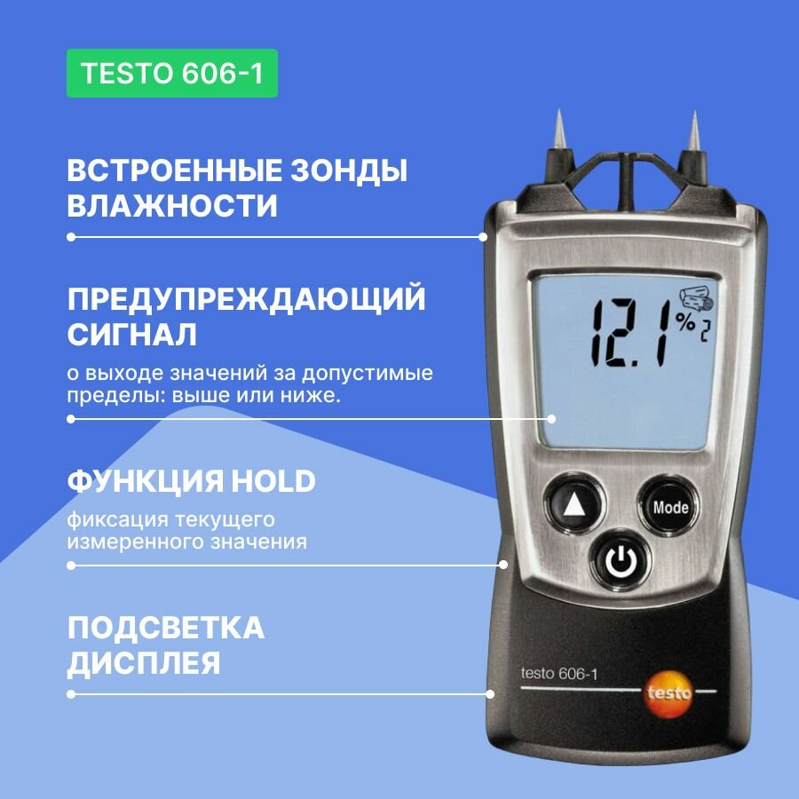 Обзор преимуществ измерителя влажности материала testo 606-1: простота в эксплуатации, точное и надежное измерение, подходит для различных видов древесины и строительных материалов;