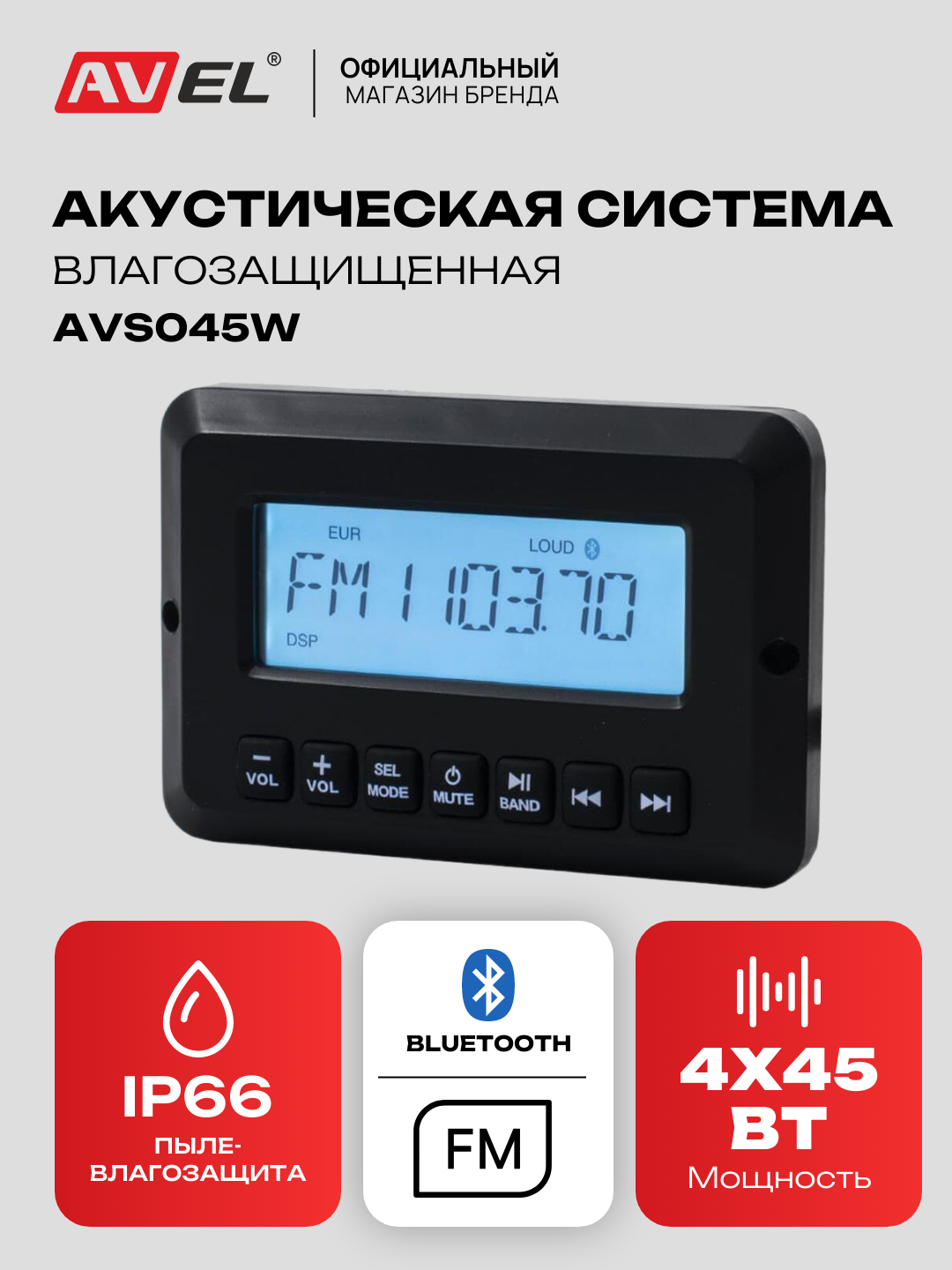 Купить Влагозащищенная акустическая система AVEL для катера, яхты, лодки, Влагозащита IP66, 4*45 Вт, Bluetooth, AVS045W с доставкой по всей России. Влагозащищенная акустическая система AVEL для катера, яхты, лодки, Влагозащита IP66, 4*45 Вт, Bluetooth, AVS045W: сравнение цен, характеристики, фото, актуальное наличие и цены.