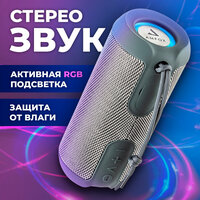 Купить Влагозащитная портативная колонка bluetooth, AMFOX, ASP-777, 2 динамика по 5Вт, как jbl акустика с подсветкой, xiaomi, серая с доставкой по всей России.
