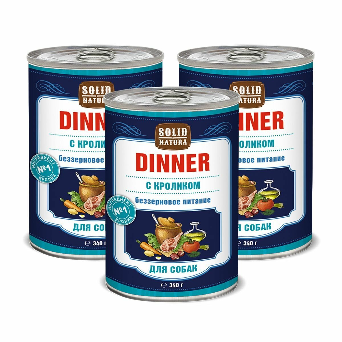 Влажный беззерновой корм для собак Solid Natura Dinner Кролик, упаковка 3 шт х 340 г: сравнение цен, характеристики, фото, актуальное наличие и цены.