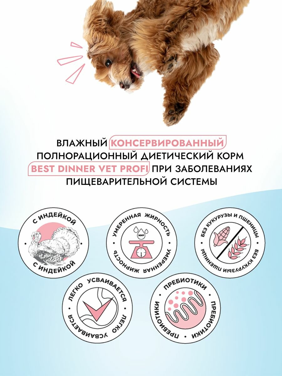 Влажный диетический корм Best Dinner VET PROFI GastroIntestinal для собак при заболевании ЖКТ любых пород Индейка (14шт х 100гр): сравнение цен, характеристики, фото, актуальное наличие и цены.