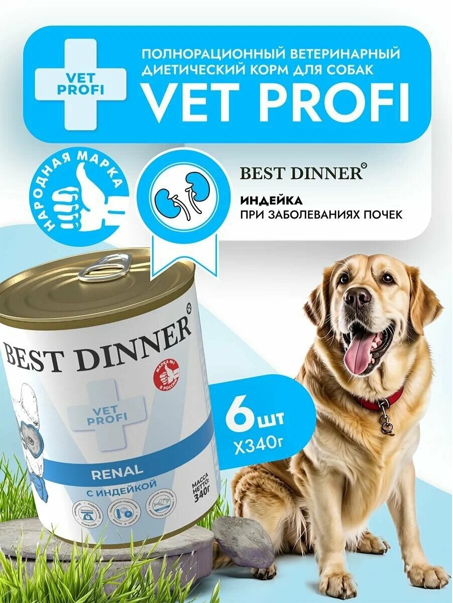 Влажный диетический корм Best Dinner Vet Profi Renal для собак при заболевании почек Индейка 6шт х 340 г: сравнение цен, характеристики, фото, актуальное наличие и цены.