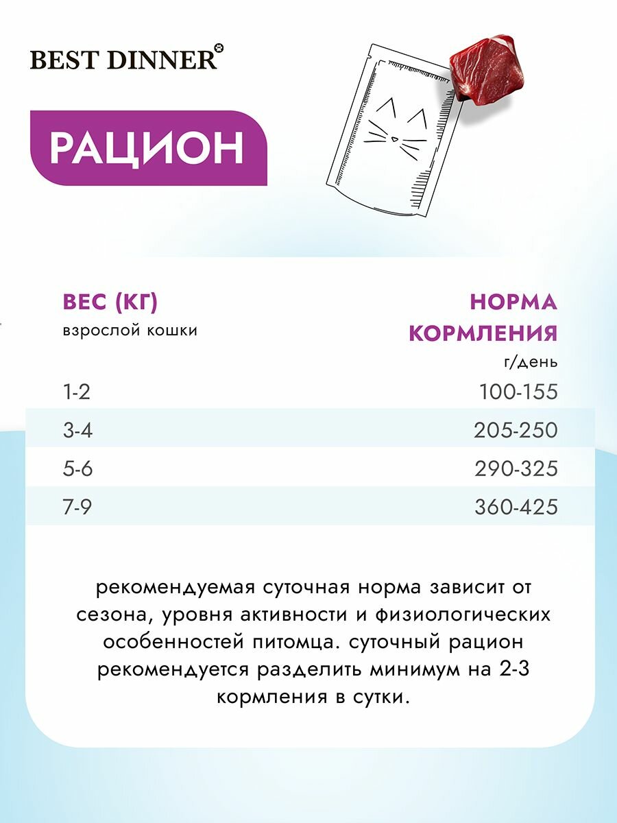 беззерновой, гипоаллергенный, для беременных / кормящих кошек, для вывода шерсти, для живущих в помещении, для живущих на улице, для здоровья кожи и блеска шерсти, для здоровья костей и суставов, для профилактики стресса, для снижения запаха стула, для стерилизованных/кастрированных, при диабете, при чувствительном пищеварении, профилактика МКБ, профилактика зубного камня, профилактика избыточного веса