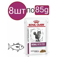Влажный диетический корм Royal Canin Renal With Fish (Рыба), для взрослых кошек, для поддержания функции почек, кусочки в соусе (8шт по 85г)