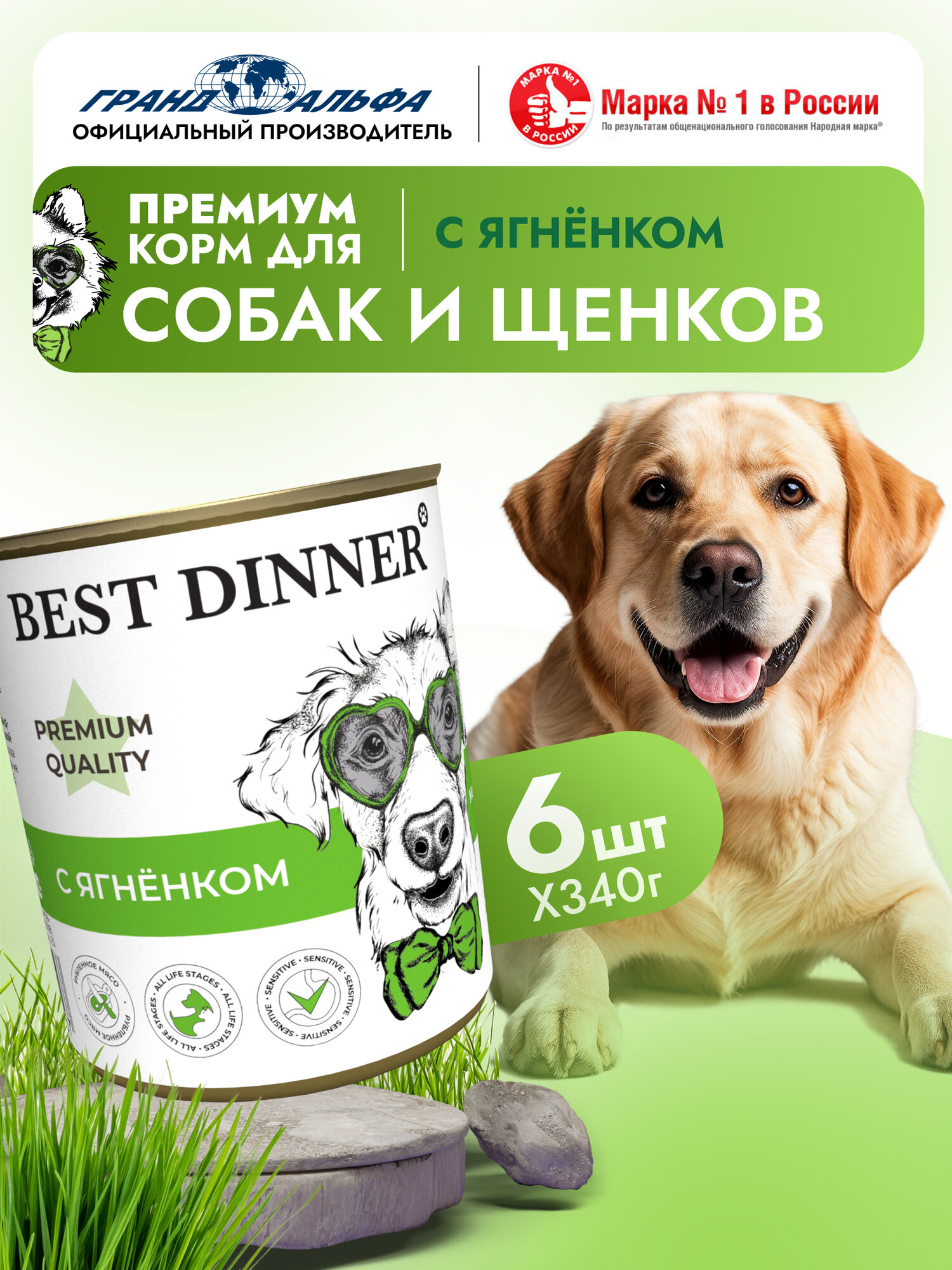 Влажный корм Best Dinner Premium для собак любых пород Меню №1 Ягненок (6шт х 340гр): сравнение цен, характеристики, фото, актуальное наличие и цены.