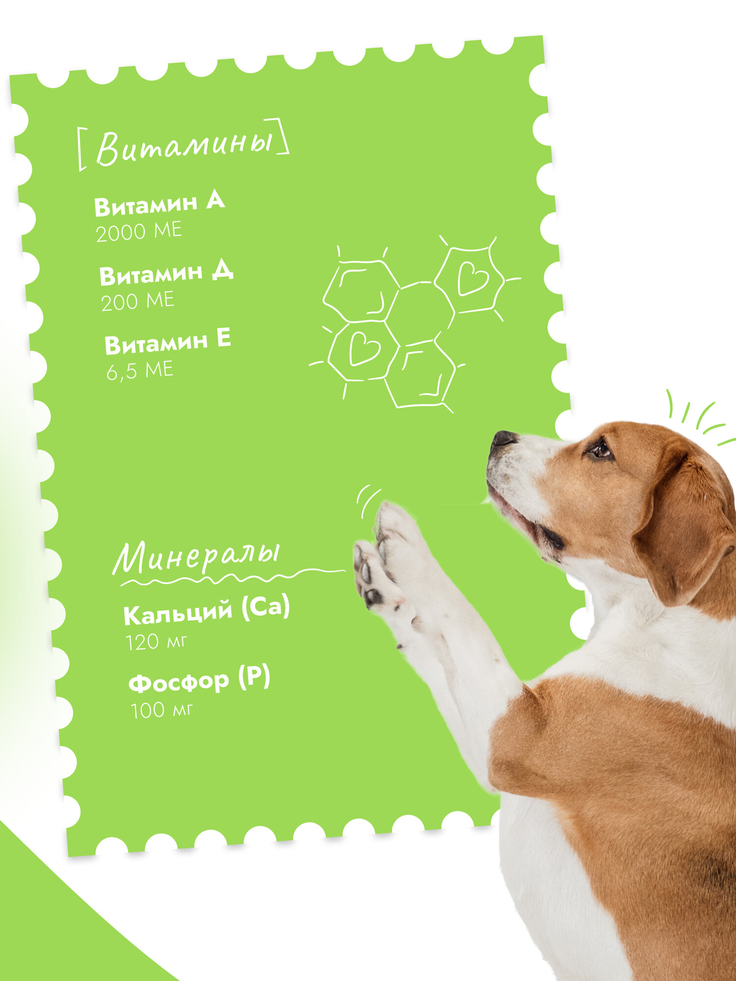 | Минеральные вещества | Витамины, МЕ: А – 2000; Д – 200; Е – 6,0. Минеральные вещества, мг: кальций (Са) - 120,0; фосфор (Р) – 100,0. |