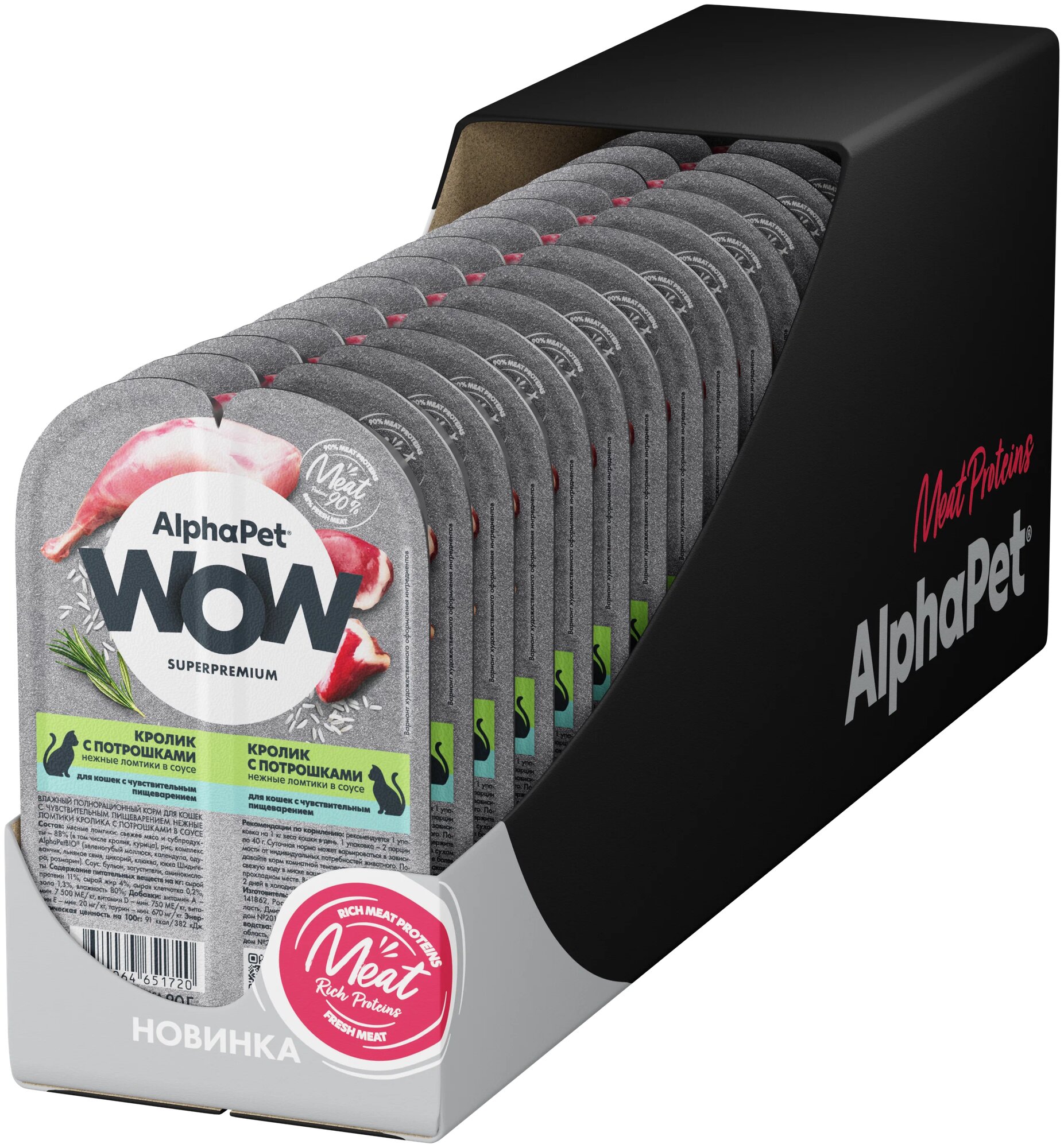 Купить Влажный корм AlphaPet WOW пауч для кошек с чувствительным пищеварением (ломтики в соусе) Кролик и потрошки, 80 г х 15 шт с доставкой по всей России. Влажный корм AlphaPet WOW пауч для кошек с чувствительным пищеварением (ломтики в соусе) Кролик и потрошки, 80 г х 15 шт: сравнение цен, характеристики, фото, актуальное наличие и цены.